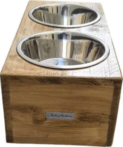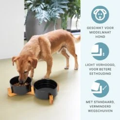 Voerbak Hond – Voerbak Kat – Drinkbak – Met Bamboe Standaard – 2x 400 Ml – Maat S – Groen Mat
