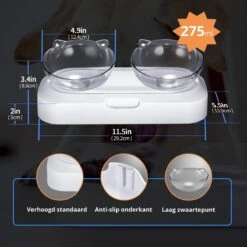 De dubbele katten voerbakken zijn gemaakt van hoogwaardig materiaal, wat milieuvriendelijk, duurzaam en veilig is voor je kat. Daarnaast zijn de transparante voer/drink bakjes vaatwasser bestendig.