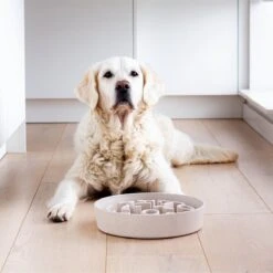De District 70 BAMBOO slow feeder is verkrijgbaar in twee maten, Ø21 (small) en Ø28 cm (large). De kleine maat is geschikt voor hondenrassen zoals een Cocker Spaniël, Beagle, Shiba Inu, Teckel en een Jack Russell. De grote maat is geschikt voor grotere hondenrassen zoals een Labrador, Golden Retriever, Border Collie, Herdershond en een grote Labradoodle.