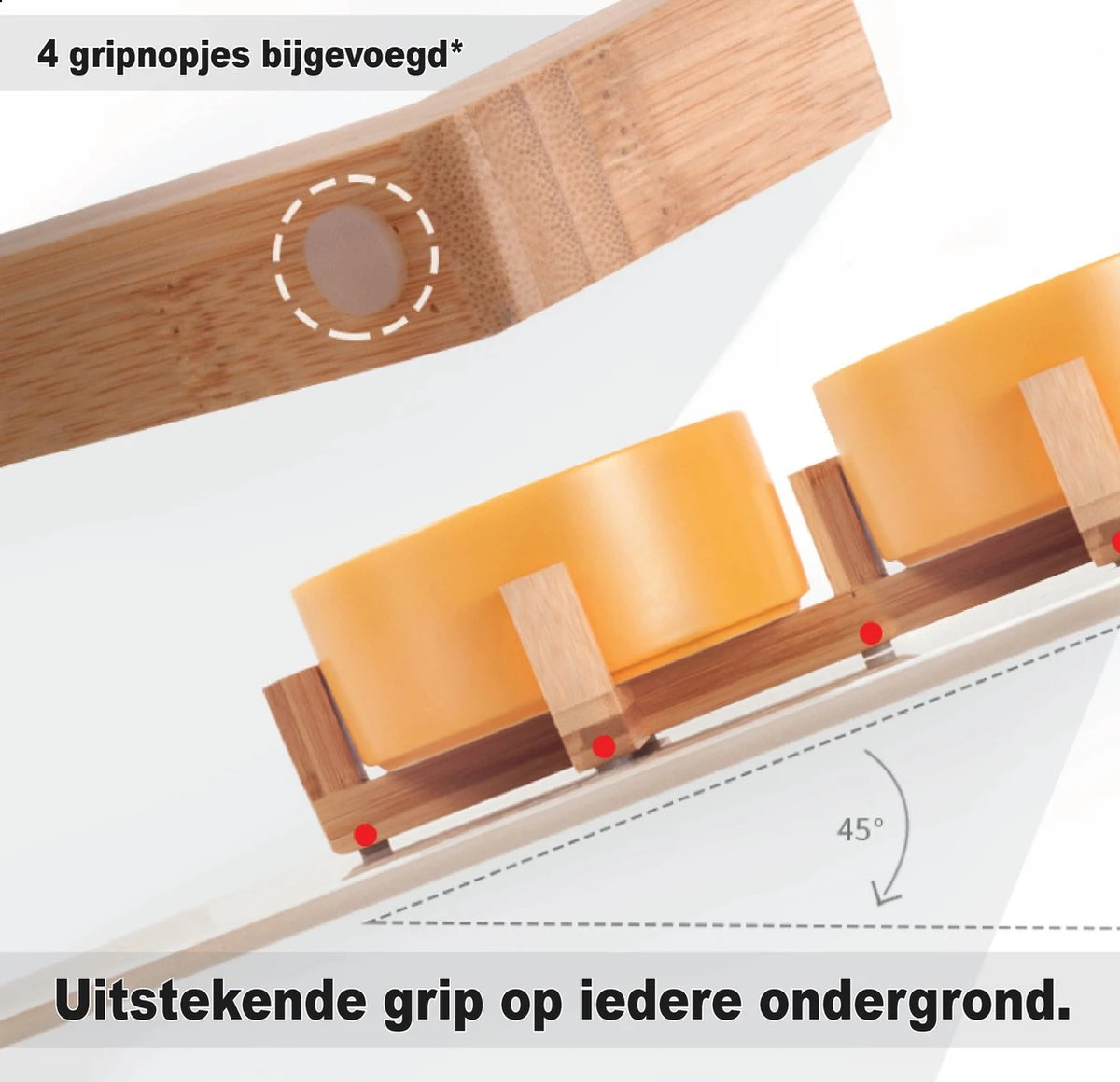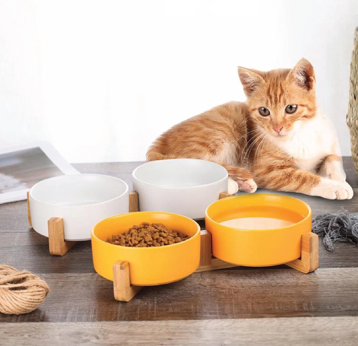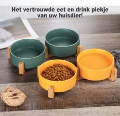 Deze stijlvolle voerbak en drinkbak van Doufy is gemaakt van hoogwaardig keramiek met een bamboehouten standaard. De bamboe houden geeft verhoging aan de keramieken bakjes waardoor het eten en drinken op het favoriete eet en drinkplekje net wat makkelijker is voor uw huisdier.