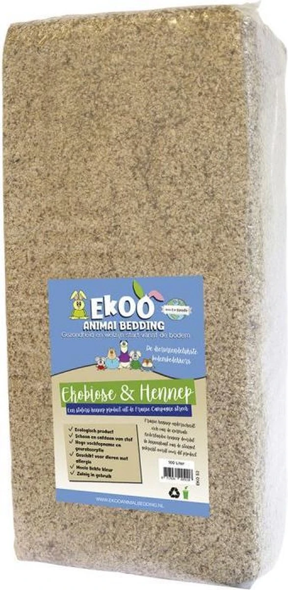 Ekoo Ekobiose & Hennep is een stofvrij hennep product uit de Franse Campagne streek. Franse hennep onderscheidt zich van de normale Nederlandse hennep doordat de binnenkant van de stengel gebruikt wordt voor dit product. Land van oorsprong: Frankrijk