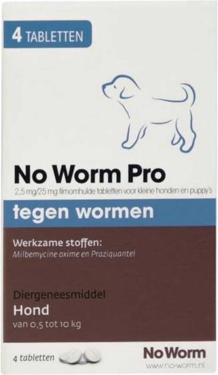 Emax Hond No Worm Pro S 4 TablettenHet nummer 1 ontwormmiddel van de dierspecialist! Met No Worm Pro bestrijd je de lint-, spoel-, haak-, zweep-, long-, en zelfs de franse hartwormen bij jouw puppy of kleine hond. Alle pups en kleine honden kunnen ontwormd worden met No Worm Pro.