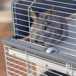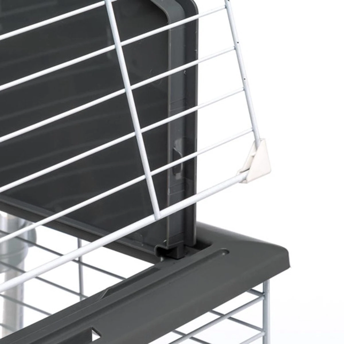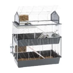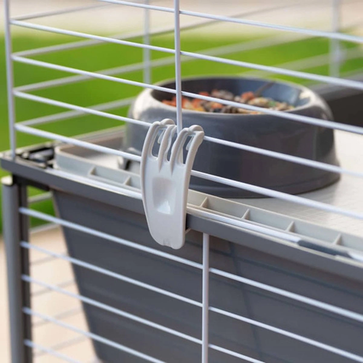 Deze kooi, die erg ruim is, zorgt ervoor dat je huisdier plezier kan hebben met zijn favoriete tijdverdrijf. Bovendien heeft deze konijnenkooi bevestigingsclips aan de zijkanten die je kan loshaken om de onder- en bovenkant te verdelen, speciaal ontworpen om een goede luchtcirculatie en een schone omgeving te garanderen. Daarnaast kan het verhoogde dak met witte strepen en een schuifdeur aan de voorkant half worden geopend met praktische bevestigingsclips om het dagelijkse onderhoud makkelijker te maken en de veiligheid van je huisdier te waarborgen. Deze kooi valt op door zijn drie verdiepingen tellende structuur met stevig gelakt gaas. Verder zijn er ruime bodems van thermoplastische hars die vuil en etensresten effectief opvangen, evenals voedselresten en uitwerpselen, zodat ze in de kooi blijven en niet eruit vallen.