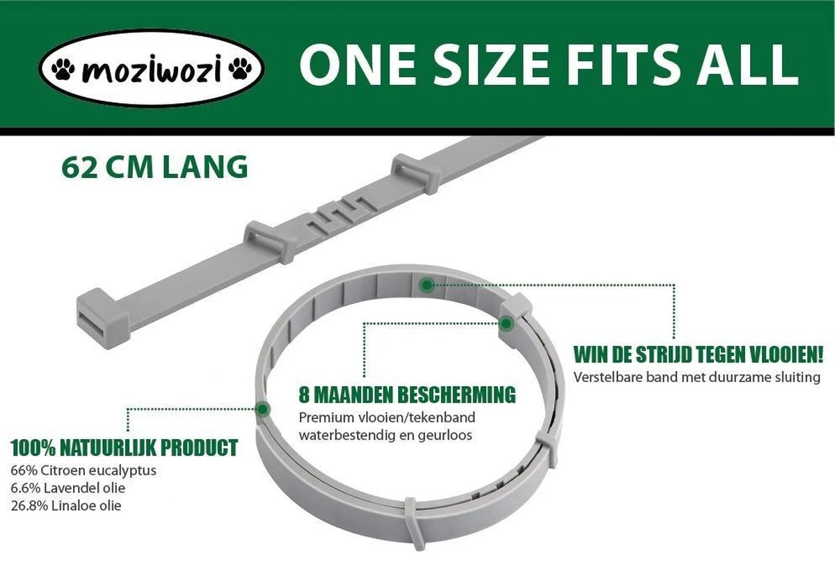 De vlooienband van MoziWozi voor honden is een geweldig hulpmiddel in de strijd tegen vlooien en teken. De 100% natuurlijke samenstelling van de MoziWozi vlooienband is veilig voor uw huisdier en voor u en uw gezin.