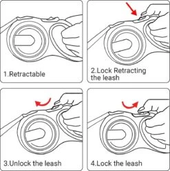 – Rem- en vergrendelingssysteem met één hand maakt het mogelijk om de hondenriemkabel vrijelijk af te stellen op een lengte waar uw huisdiervrienden zich op hun gemak voelen.