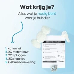 Het mooiste van alles? Jouw kattennet wordt geleverd inclusief 20 meter touw en bevestigingsmateriaal. Hang het veiligheidsnet binnen enkele minuten op en zorg moeiteloos voor een extra veilig balkon. Lees voor gebruik de handleiding, deze is te downloaden boven deze omschrijving. Het katten net is ook op te hangen zonder gaten te boren. Gebruik hiervoor kabelbinders, deze worden niet meegeleverd.