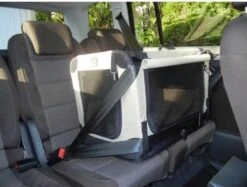 De banden zijn speciaal ontwikkeld voor veiligheidsgordels zodat je de bench vast kunt zetten in de auto. Dit zorgt dat je veilig met jouw hond in de auto kunt rijden. De kennel heeft 3 openingen: aan de voor-, boven- en zijkant. De opening aan de zijkant zorgt ervoor dat je de kennel ook in de kofferbak van de auto kunt plaatsen.