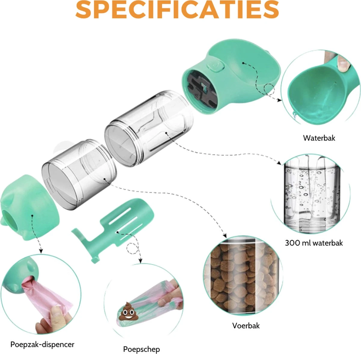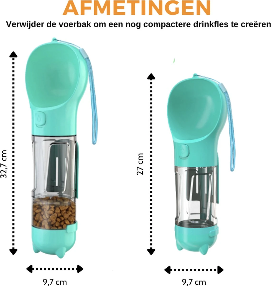 Een goede wandeling, wat drinken, een lekker hapje en misschien even toiletteren. Zoveel verschillen we niet met onze vier voetige vrienden, in de basis hebben we dezelfde behoeftes als onze trouwe vrienden. Een goede wandeling zorgt voor een mentale en fysieke boost voor zowel hond als mens. Echter, een lange wandeling maakt ons dorstig en hongerig. Om deze reden nemen we wat te eten en drinken mee voor ons en onze vriend. Dit is alleen nog niet zo makkelijk, eenmaal het huis verlaten. Om deze reden hebben we de 3 in 1 honden drinkfles van RoiPets. Met de RoiPets 3 in 1 drinkfles kan je vier voetige vriend voorzien worden in hydratatie, voeding en een bezoek aan het toilet.