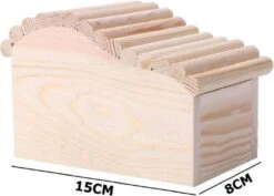Leuk houten speel- en slaaphuisje voor kleine knaagdieren. Spelen, jagen, er aan knagen en er in uitrusten, in dit huisje kan uw knaagdier alle kanten op. Het huisje is een goede plek waarin jouw knager zich kan verstoppen en terugtrekken voor wat heerlijke rust. Het huisje heeft een extra opening voor natuurlijke ventilatie en heeft een dak dat is vormgegeven voor extra grip. 15×8 cm. Geschikt voor onder andere: hamsters, muizen, ratten, konijntjes, cavia’s of gerbils.