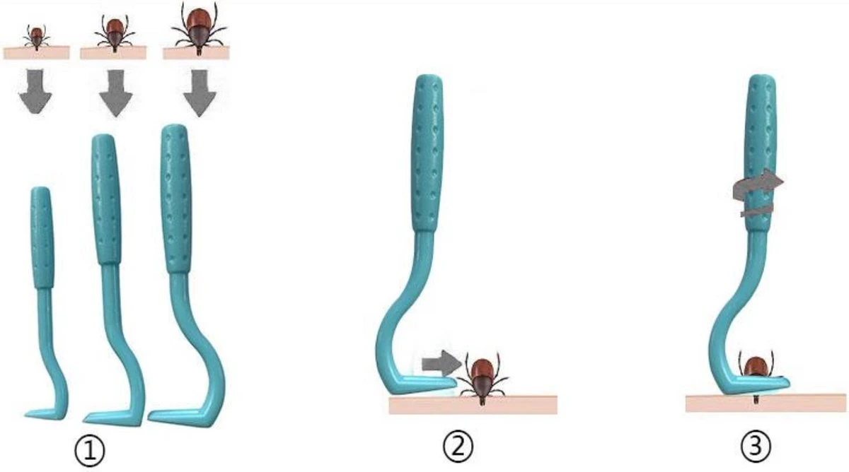 Deze tekenhaakjes maken het mogelijk ook pijnloos, snel en compleet de teek te verwijderen. Het is gemakkelijker te bedienen dan een tekentang. Tijdens het verwijderen van de teken wordt geen druk op het lichaam van de teek uitgeoefend, waardoor er geen bacteriën in de huid komen.