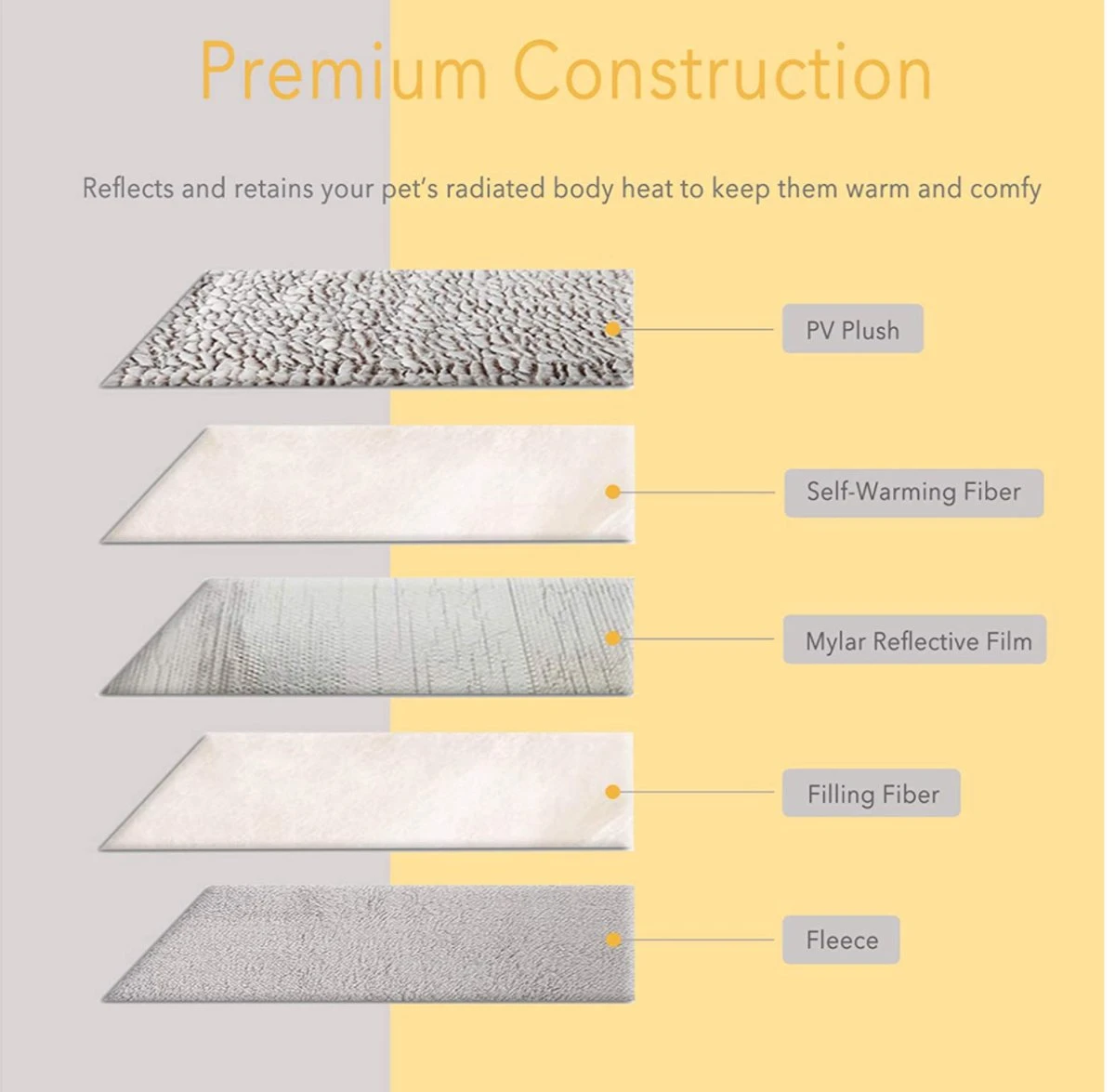 Je hoeft niet bang te zijn voor schadelijke stoffen of onaangename geurtjes. Absorbeert de lichaamswarmte van je huisdier en zorgt daardoor voor een behaaglijke warmte.