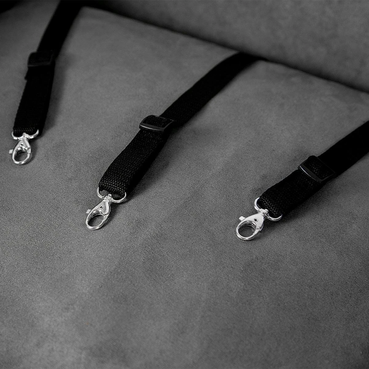 - Aangenaaide riemen die aan het harnas van de hond kunnen worden bevestigd, zodat hij niet uit de stoel springt