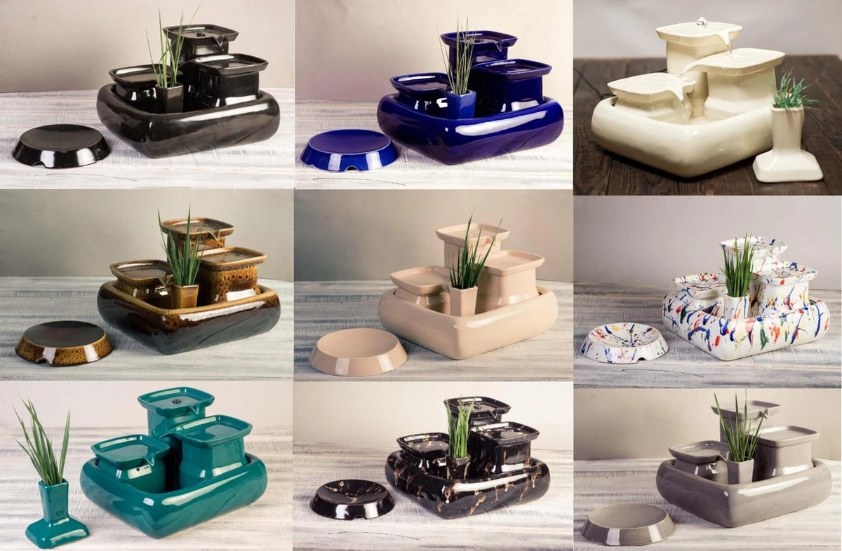 Fontein voor katten gemaakt van hoogwaardig keramiek. Doordat de fontein van keramiek is heb je geen gedoe met filters. Deze fontein beschikt over wel 8 drinkzones. Zo kunt uw kat zelf goed kiezen welke drinkzone hij/zij het prettigste vindt drinken. Voor katten is het belangrijk om veel te drinken om vervelende ziektes te voorkomen.