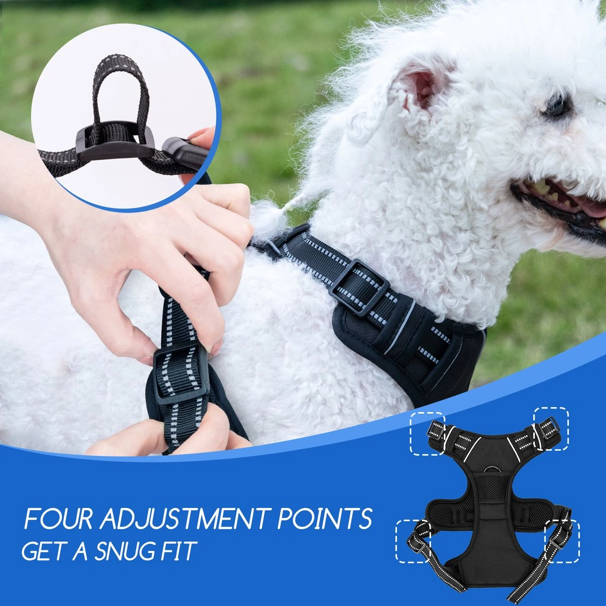 Samen met reflecterende banden rondom, is deze harnas zeer reflecterend en houdt uw huisdier zichtbaar en veilig voor automobilisten en joggers in het donker.