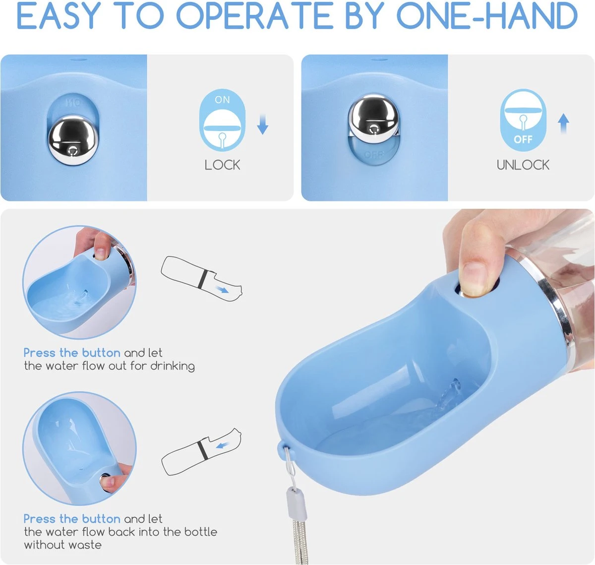 huisdier waterfles dispenser met een-toets vergrendeling water en rubberen afdichtingsring om een lek te voorkomen. Zo kan je het in je zak opbergen zonder zorgen.