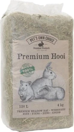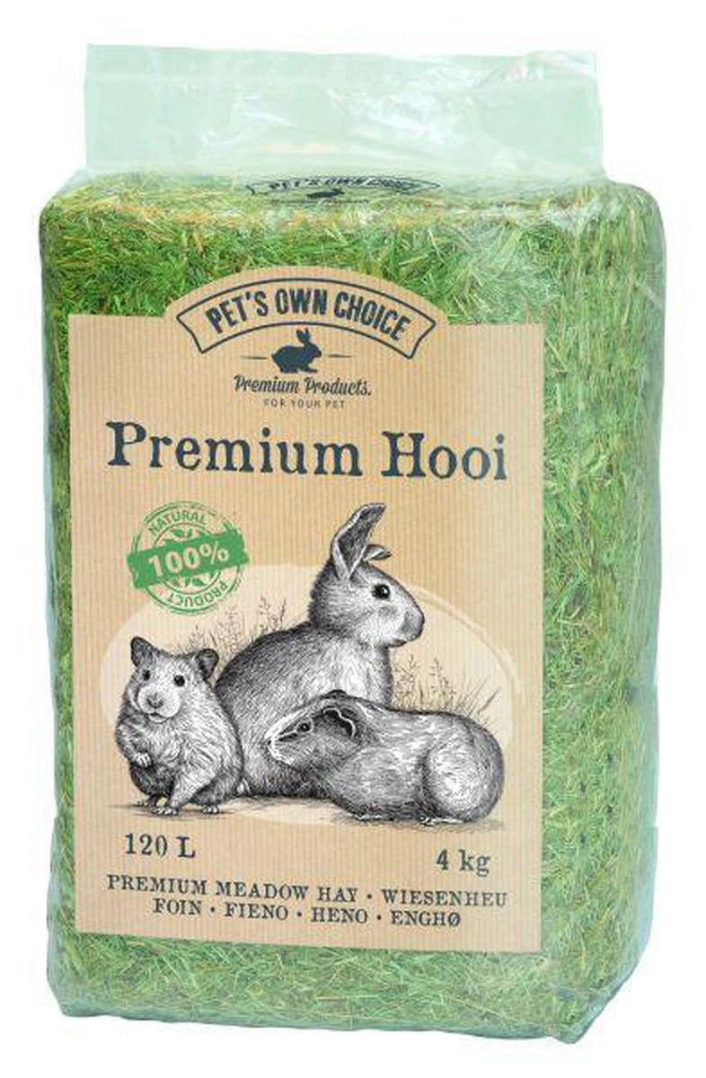 Hooi is essentieel voer voor konijnen en knaagdieren. Door de ruwe vezels heeft hooi een positief effect op het gebit en de darmwerking van jouw dier. Door de ruwe vezels moeten blijven de darmen van jouw konijn constant in beweging, wat essentieel is voor een gezond konijn. Daarnaast moet het konijn langdurig kauwen op het hooi, wat helpt de kiezen op de juiste manier af te slijten. De kiezen van een konijn groeien gedurende zijn hele leven door en daarom is het belangrijk dat jouw konijn veel goed hooi tot zijn beschikking heeft. Ook gaat hooi verveling tegen; dieren zijn lang bezig om het op te eten, en daarnaast nestelen bijvoorbeeld cavia’s, muizen en hamsters er graag in. Met dit premium hooi van Pet’s Own Choice biedt jij jouw dier dus lekker voer en voldoende afleiding die helpt zijn gezondheid op peil te houden.