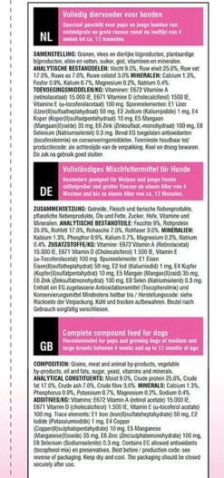 ProCare puppy & junior is een hoogwaardige voeding speciaal voor de pup en jonge hond. De met zorg geselecteerde voedingsstoffen ondersteunen een gezonde groei. Vitaminen en mineralen dragen bij aan een goed werkend immuunsysteem en een aangepast calcium en fosforgehalte zorgt voor een optimale ontwikkeling van botten en gewrichten. Je pup krijgt een gelijkmatige opbouw en zal evenwichtig opgroeien tot een volwassen hond. De toevoeging van L-carnitine zorgt voor een optimale vetverbranding.