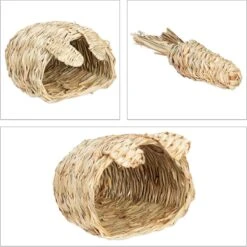 Bied je knagers een gevarieerd verblijf om te spelen, knabbelen en schuilen met deze 3-delige set van knaagdier speelgoed. De grashuizen in 2 verschillende groottes zijn een comfortabele schuilplek voor je lievelingen. De kleine konijnenoortjes verleiden de dieren om te gaan spelen en knabbelen. Je diertjes kunnen zonder problemen aan het konijnen speeltje in de vorm van een wortel knagen want deze is – net zoals de andere toebehoren – volledig gemaakt van natuurlijke materialen.