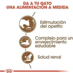 | Bijzonder voedingsdoel | Royal Canin Ageing +12 bevordert het gezond oud worden van de kat dankzij een gepatenteerd complex van antioxidanten, EPA/DHA en tryptofaan, bekend om zijn kalmerende effecten. |