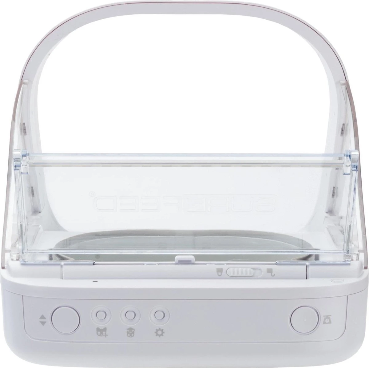 De SureFeed Microchip Voerbak Connect heeft een afmeting van 21,5 x 22,7 x 31 cm en is wit van kleur. De Petfeeder bevat 1x een grijs bakje, 1x een gesplitst grijs bakje en 1x een grijs matje. Andere kleuren zijn los verkrijgbaar. Bevat GEEN hub.