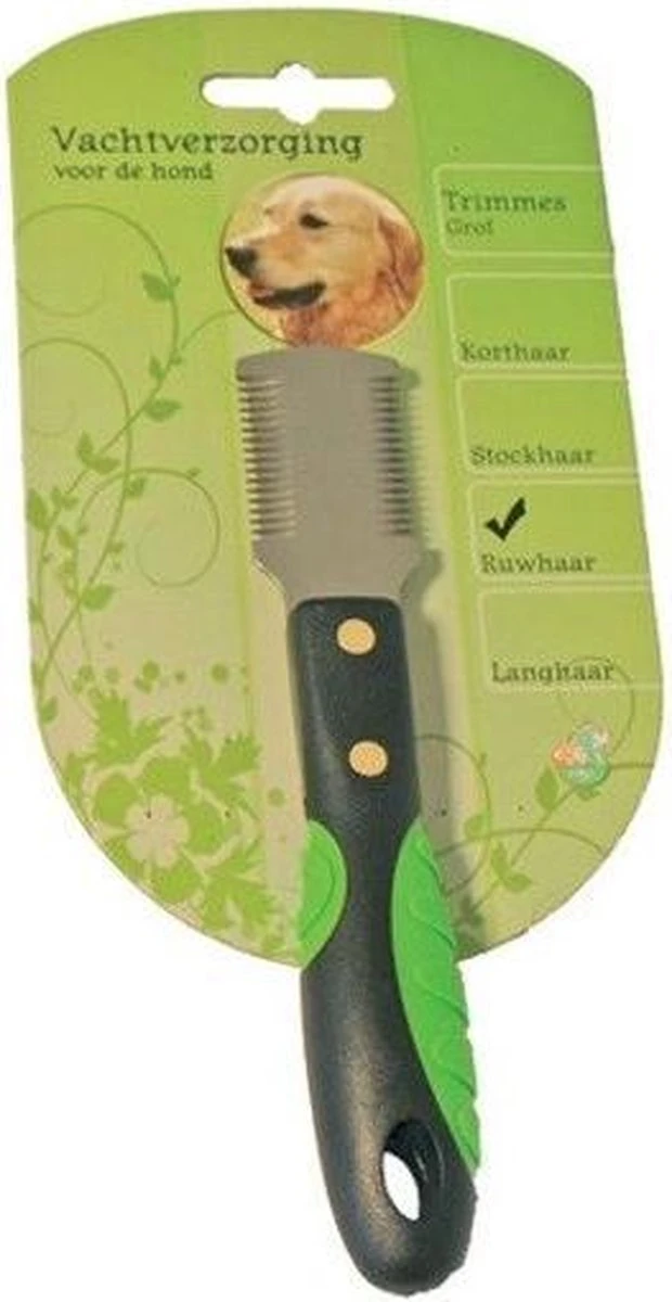 Dit trimmes is geschikt voor het plukken van de vacht. En is geschikt voor alle ruwharige honden. Dit trimmes is door zijn dubbele tanden geschikt voor zowel links- als rechtshandig gebruik.