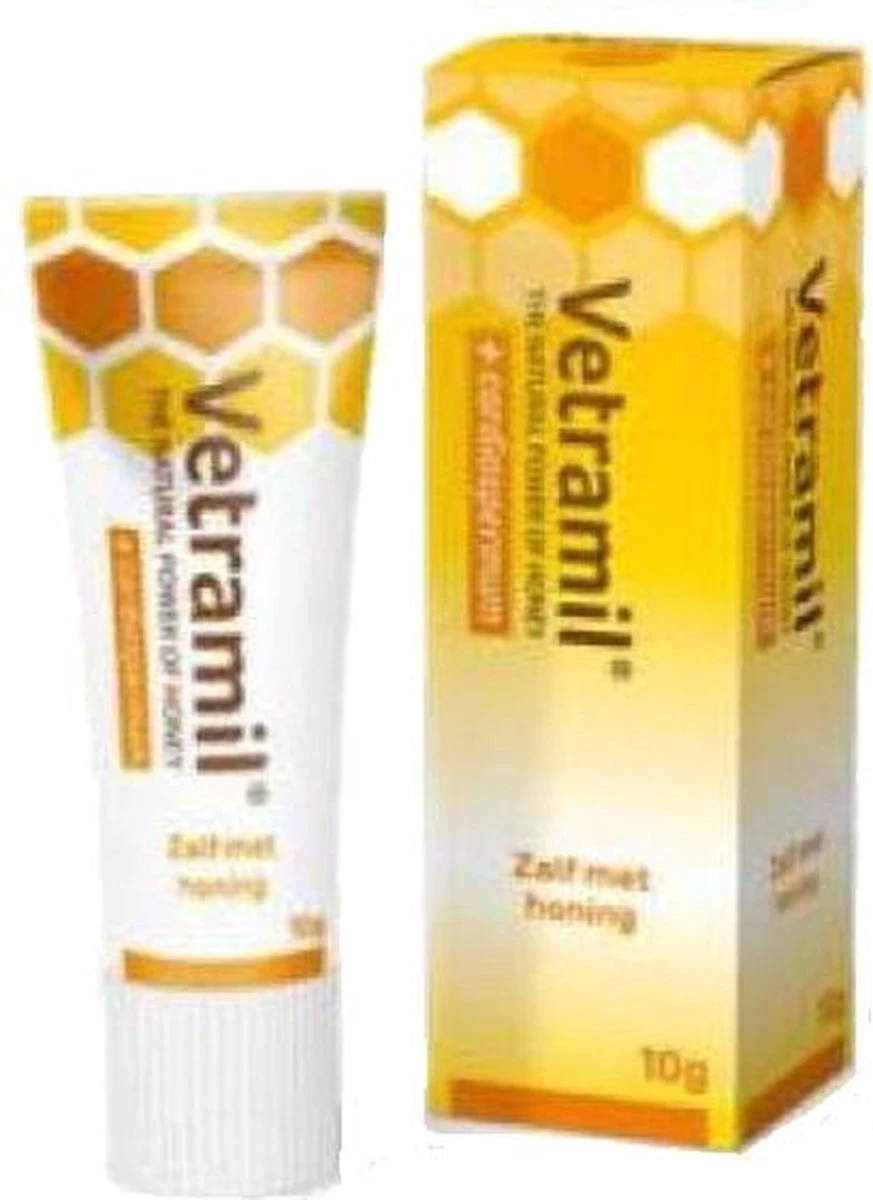Honingzalf Vetramil; Zalf op basis van honing en etherische oliën.