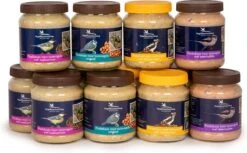 Nu in een mixdoos met de 3x pindakaas tuinvogel original, 3x pindakaas tuinvogel met meelwormen, 3x pindakaas tuinvogel met stukjes noot en 3x pindakaas tuinvogel met bosvruchten.